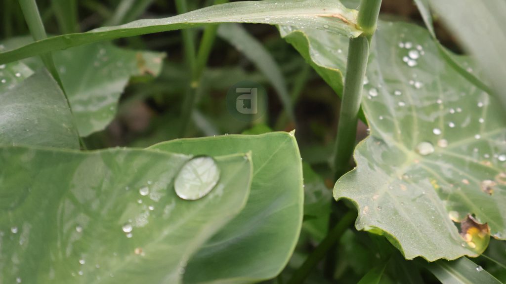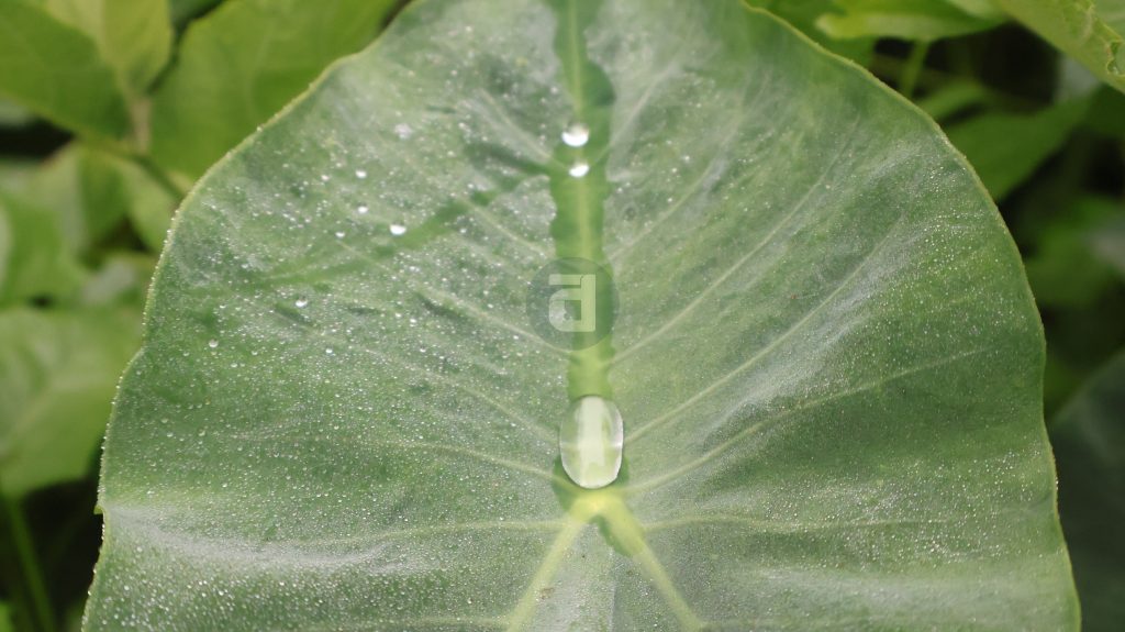 Taro leaves stored dews for the morning.